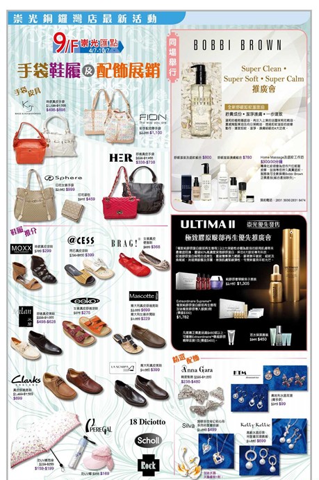 内容:手袋及配饰展销,品牌包括:KOJI、FION、Sphere、MOXX、@CESS、BRAG、Mascotte、eeko、clanks、scholl、BOBBI BROWW、Ultima II等。