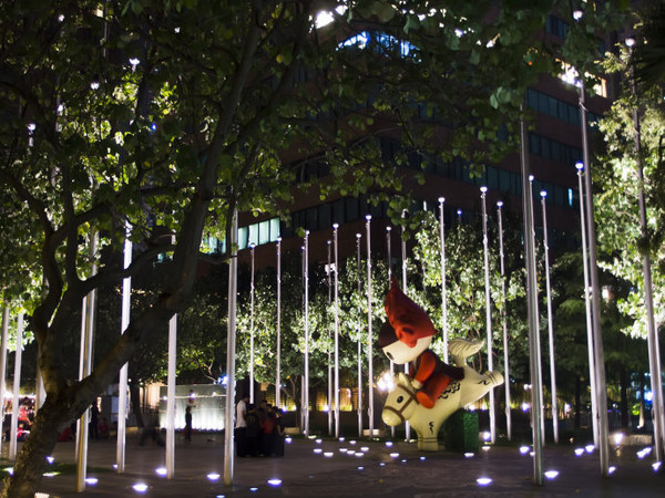 从这个旗杆和地灯构成的长廊走过,很有感觉