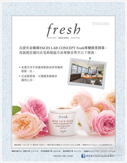 Fresh概念專櫃登陸金鐘廊FACES LAB CONCEPT(至12年7月31日)