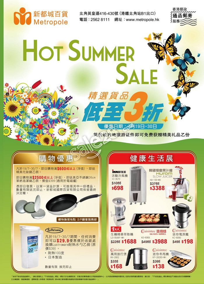 香港新都城百货疯狂打折中!你怎么能不来参加?!作为精明消费者,这实在是扫平货的最佳时机。推广期内凡即日在香港新都城百货购物满HK$600或以上(净值),即送精美化妆镜一个。即日购物满HK$2500或以上(净值),即送美亚不銹钢26cm单柄易洁锅一个,价值HK$399(适用于电磁炉),同期更举行超级BB用品展,大量精选货品特价发售,还有大量夏日家电、旅行用品、泳衣及鞋履特价发售!全场最低3折!