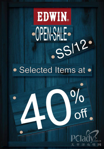 由即日起,EDWIN精选上衣一律6折,精选裤款一律8折,优惠期有限,欲购从速。
