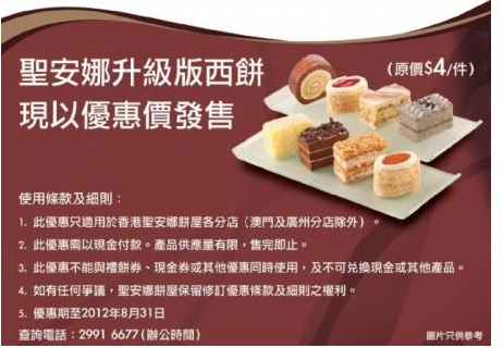 地点:全港圣安娜各分店