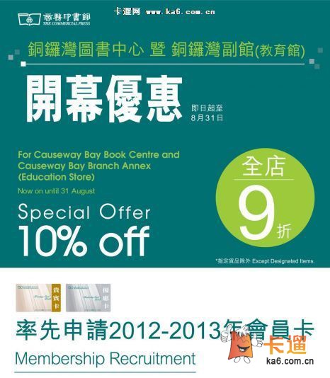 商务印书馆开幕优惠 铜锣湾图书中心及副馆全店9折