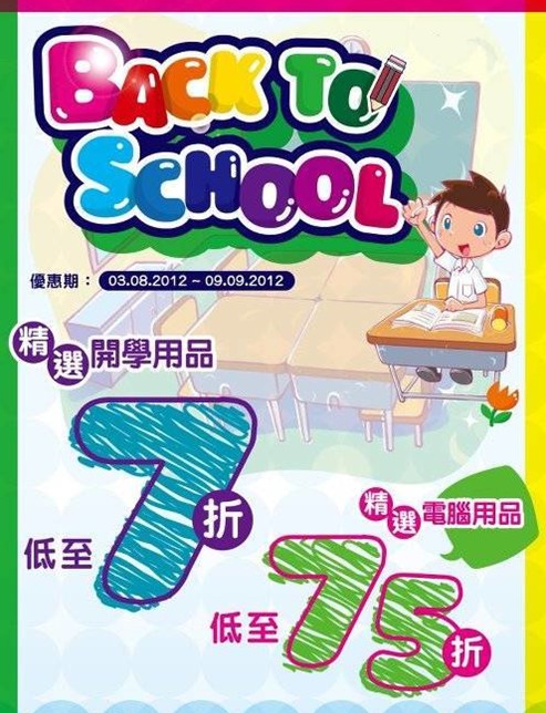 全线举行「Back to School」优惠,精选开学用品低至7折,精选电脑用品低至75折