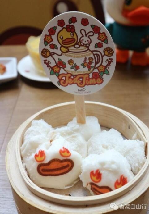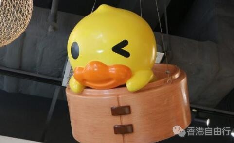 旺角B.duck卡通主题茶楼~B.duck在旺角将会开德记茶楼!店内充满老香港特式和卡通可爱的风格,有蒸笼、雀笼及中式灯笼吊灯!不过,最抢眼的就是天花吊着的巨型b.duck公仔啊!食物方面,很多招牌菜式都有B.duck ,例如流心奶黄包、火焰叉烧包、虾饺王、Buffy蛋挞等,全部都很可爱呢!