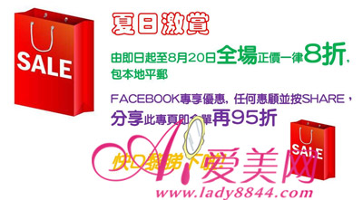 【香港打折】夏日激赏:由即日起至8月20日全场正价一律8折,包本地平邮。