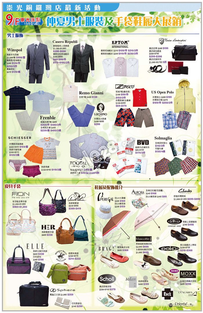 每次看到崇光百货的折扣活动都让我们有前往香港购物的冲动,因为香港崇光百货的折扣每次都很吸引人,快来看看本周崇光百货男装及手袋鞋履的折扣吧!崇光百货9楼的崇光汇点本周准备了各大品牌的男装,不管是商务款还是休闲款,甚至是居家服饰都能在这里找到,最重要的是最低只需要3折的价格你就能拥有它们!另外还有诸多手袋及鞋履的折扣都不可错过哦!