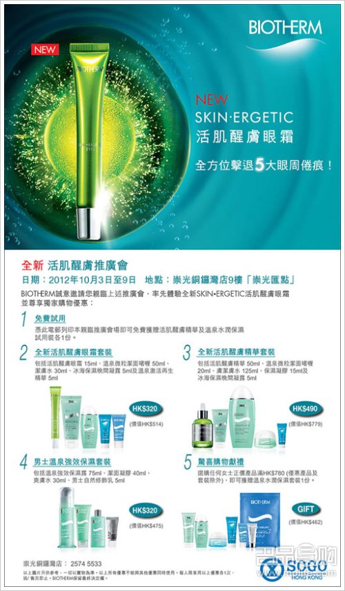 Biotherm 祟光銅鑼灣店 – 活肌醒膚推廣會 (至12年10月9日)