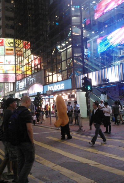 在此期间,听到有人说了一句,挺好笑的,也同大家分享一下:迎面走来了个李锦记的酱油瓶(是个人穿上酱油瓶的衣服,下面图也有它,看你能不能找得出来),然后有个女的就大声的开玩笑说,看到世界末日真的到了,现在连李锦记的酱油瓶都会自己走了。(个人觉得挺好笑的,如果你们觉得不好笑,不要砸我哦。。)