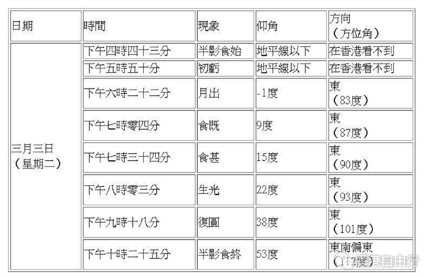 今日(3日)元宵佳节,适逢香港傍晚将出现月全食天文现象,若天气情况许可,市民可以肉眼直接观赏月全食过程,面向东方而没有障碍物的地点都适合观赏这次月食。