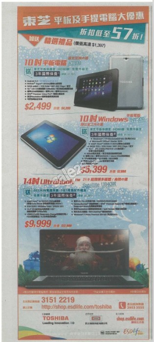 57折!香港东芝平板及手提电脑打折
