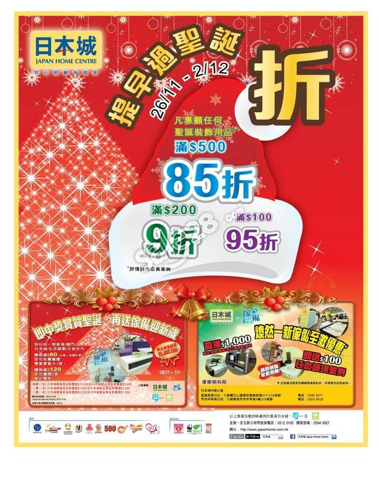 下个月就要迎来圣诞节啦!每年的圣诞节总是大家最开心的时刻,除了有美味的食物外,还有各种折扣哦!香港日本城为大家准备了很多圣诞商品,只要在香港日本城内购买任何圣诞装饰用品满HK$100仲有95折!买得越多,优惠越多!买够HK$500圣诞装饰用品,最多仲有85折!快去香港日本城选购圣诞商品装饰你的家吧!