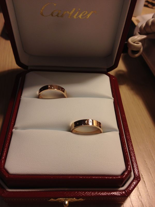 婚戒:太古广场购买。婚戒也是卡地亚的,在一家店一起买了,LEVE系列玫瑰金,7100港币。本来想买宝格丽单环的,但确实太厚了戴着不舒服,老公还是喜欢这种薄的。
