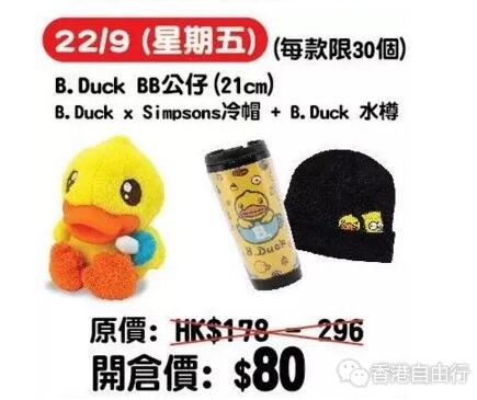 香港优惠:B.Duck开仓大割引低至2折 9月21至28日推介必买