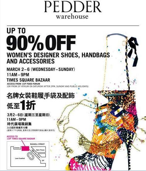 由3月2日起一连5天,铜锣湾时代广场展销集将举行清货大减价,精彩减价货品包括名设计师及高级时装品牌服饰,由华丽鞋款到典雅手袋,全部将低至1折的震撼价发售!万勿错过这个添置新装的好机会!