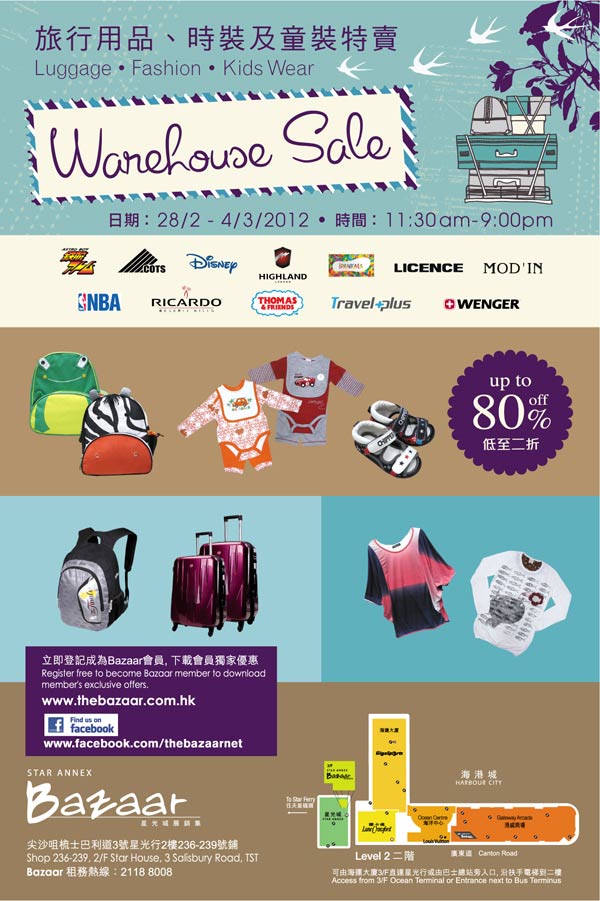 [香港星光行] 旅行用品、时装及童装低至2折