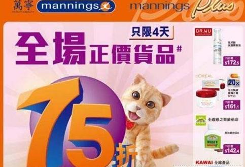 香港万宁特卖全场正价货品75折。万宁特卖系列包括女士护肤品、男士护理系列,品牌包括露得清、玉兰油、欧莱雅、旁氏、卡尼尔等等。爱美的女士们快来万宁特卖选购!享受7.5折香港折扣价!