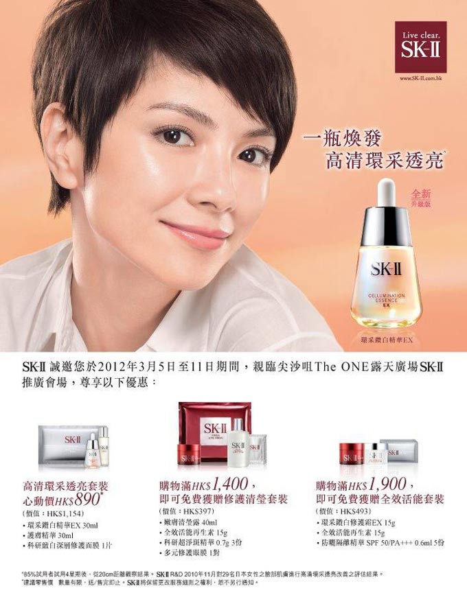 SK-Ⅱ诚邀你于2012年3月5日至11日期间,亲临尖沙咀The ONE露天广场SK-Ⅱ推广会场,尊享以下优惠: