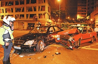港一男子醉酒超标5倍 驾车失控撞上的士致2伤