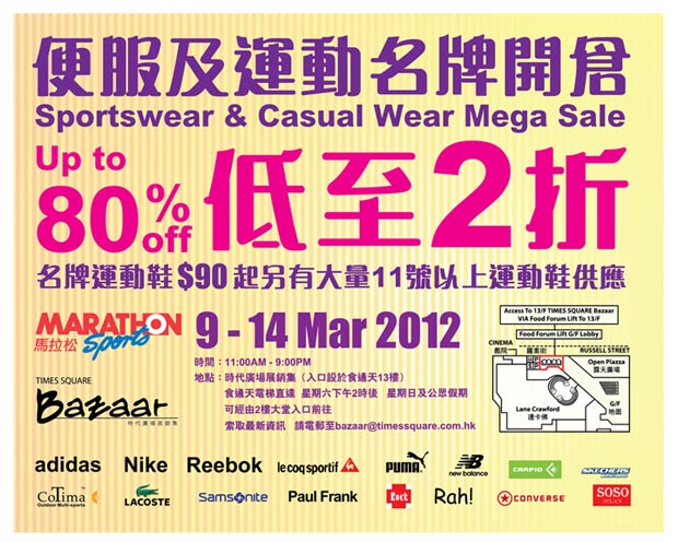 [时代广场] 便服及运动品牌展销会特卖低至2折