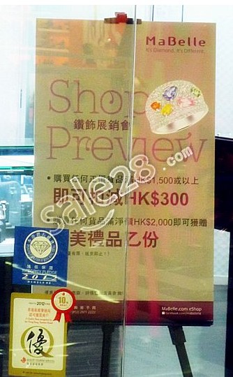 优惠内容:钻饰展销会, 购买任何正价货品满HK$1,500或以上, 即可扣减HK$300 ;购买任何货品满净值HK$2,000即可获赠精美礼品一份。