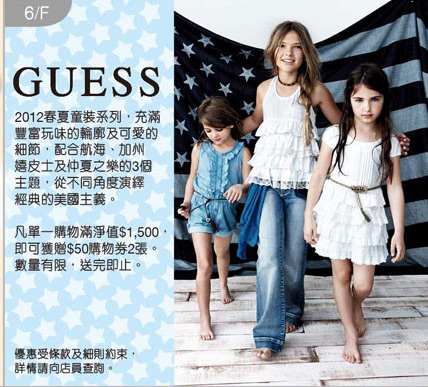 GUESS铜锣湾店 购满$1500赠$50购物劵2张