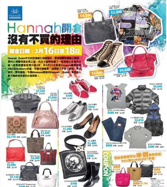 Hannah outlet 开仓大减价,全场低至2折