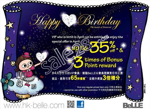 如果你是这个月生日,如果你钟意BeLLE百丽女鞋,如果你是BeLLE百丽女鞋的VIP会员,那就不要错过这个月香港BeLLE百丽女鞋为你特别送出的生日祝福了。香港BeLLE百丽女鞋优惠最新贴士,凡在本月生日的BeLLE百丽VIP会员凭会员卡购买任何正价货品,最高可以享受65折的优惠,还可以额外获赠高达3倍的积分。如果是你或者你身边有本月生日的女性朋友,还记得通知她们一起去香港BeLLE百丽拿属于你们的生日礼物啦!
