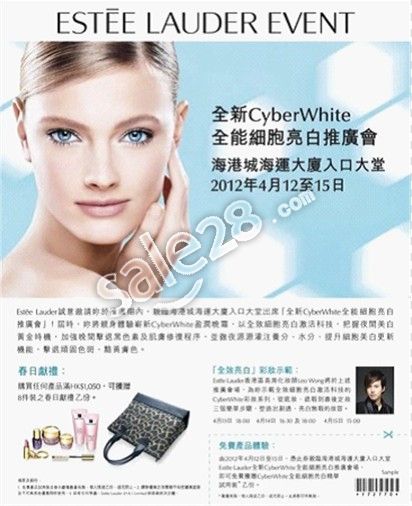 雅诗兰黛全新细胞亮白推广会这个周末就要结束了,感兴趣的MM记得抓紧时间关注啦。雅诗兰黛香港专柜优惠推广在海港城海运大厦举行,雅诗兰黛香港首席化妆师LEO WONG 将于上述推广会场,为妳示范全效细胞亮白邀活科技的CyberWhite彩妆系列,从底妆,遮瑕到最后定妆三个简单步骤,塑造出剔透、亮白无瑕的妆容。购买雅诗兰黛任何产品满$1,050,还可获赠8件装的春日献礼1份。