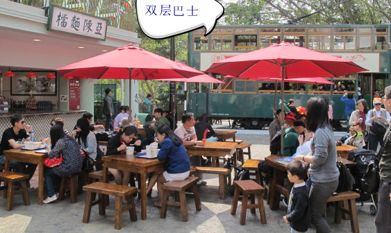 游客在这里不仅能够感受旧香港风情,还能与旧时香港打扮的演员合影,同时品尝港式点心以及玩互动游戏。