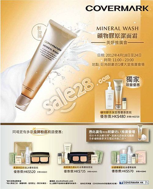 想必大家都知道M.A.C,他家的彩妆色彩鲜艳,口碑极高,但是妆前打底的东西绝对是敌不过Covermark的,很多明星用的都是Covermark的保养品和化妆品。你长草了木有呢?如果和小编一样已经迫不及待想尝试,那就得记下以下这个活动啦,即日起,香港旺角朗豪坊1楼大堂有Covermark香港优惠推广会,推广期间能以最优惠的价格买到Covermark的保养品和化妆品,好抵啵!时间有限,预购从速。