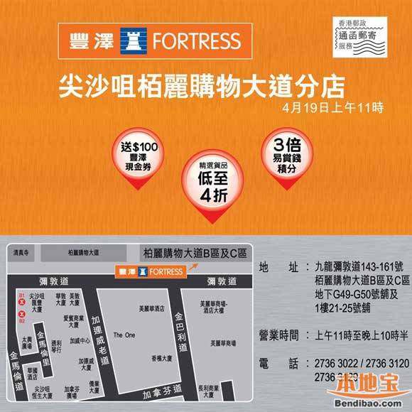 为庆祝尖沙咀栢丽大道分店隆重开幕,丰泽现送出多项优惠,包括$100 丰泽现金劵、任何消费将获双倍易赏钱积分、精选货品更低至4折。