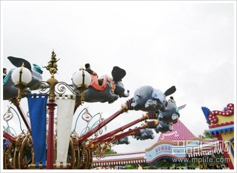 穿过美国小镇大街,首站直接来到的是幻想世界。看到幻想世界好多项目都想玩,犹豫了一会,小飞象的可爱样子还是最得我心。先去“小飞象旋转世界”排队。