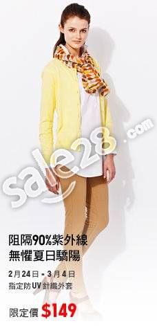 春天到了,夏天还会远吗?优衣库防紫外线系列提前为你做好准备,阻隔紫外线,呵护肌肤,迎接太阳!即日起至3月4日,指定防UV针织外套及弹力恤衫以限定价HK$149在香港优衣库发售,爱美又怕晒的女士们不要错过这个香港折扣哦!