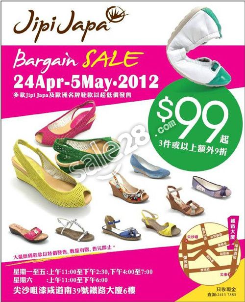 99元,你吓到没有?!BeLLE优惠推广,旗下品牌Jipi Japa震撼价,多款名牌鞋款以超低价99元起售卖,低得连你都不相信!你是不是也和小编一样,穿新鞋子很容易刮脚,脚跟老是要贴上一块两块的邦迪?那Jipi Japa就非常值得推荐了,因为这个牌子最大的特色就是舒适,比如Jipi Japa的加州无缝内里鞋,绝对不会刮脚,还可以任意弯曲;还有一个好推介是Light & Comfortable Sandals系列,喜欢坡跟鞋的姐妹可以试试,外观上拥有厚底鞋的质感,但又十分轻身,即使整天穿着亦不会感到疲累。这么舒服的鞋子,这么低的价格,你没理由不心动的吧?!记住地址啦!