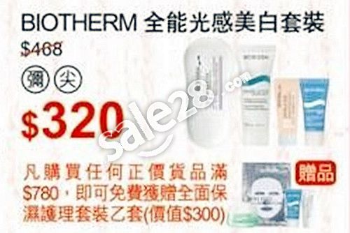 优惠内容:碧欧泉全能光感美白套装优惠价$320(原价$468);凡购买任何正价货品满$780,即可免费获赠全面保湿护理套装1套(价值$300)
