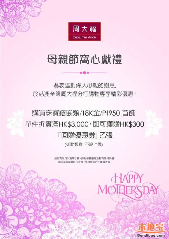 为表达对伟大母亲的谢意,于周大福购物可享以下优惠: