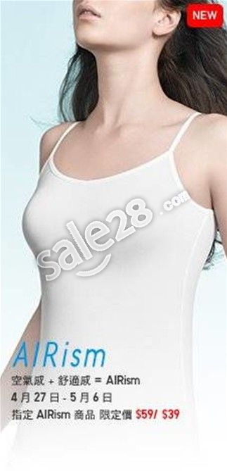 香港优衣库最新优惠先睹为快,优衣库airism内衣特价发售,指定价$39、$59。采用极细纤维,迅速排干汗水,穿在身上如空气一般,缔造轻爽舒适感受,体验前所未有,最适合夏天穿。想拥有的朋友,就即可行动吧!