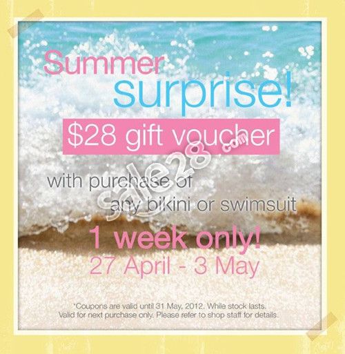 优惠内容:惠顾比基尼或泳衣送$28现金券