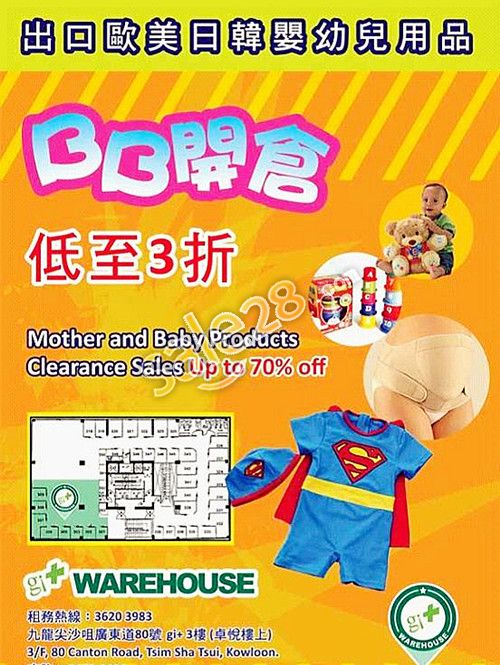 优惠内容:多款BB用品、妈咪用品、小孩衣物,大部分为出口欧美日韩等靓货低至3折发售