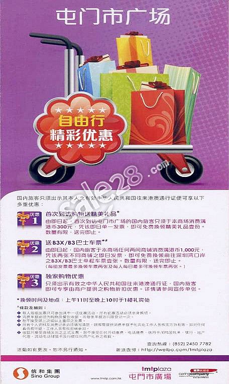 各位内地旅客注意了,现在去香港旅游购物,记得要去屯门市广场咯。屯门市广场优惠献礼,专门为内陆旅客提供特别优惠,即日起,凡到访屯门市广场,只要在1楼礼宾处出示港澳通行证,可享受以下特别优惠:购物满$300可获精美礼物;购物满$1000可获往深圳湾口岸巴士车票一张;独家购物优惠!真是非去不可了。