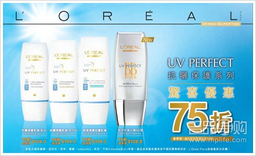 L’Oréal Paris UV PERFECT 抗晒保护系列75折