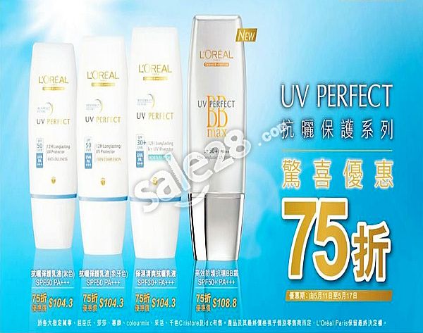 优惠内容:欧莱雅UV Perfect抗晒保护系列7.5折