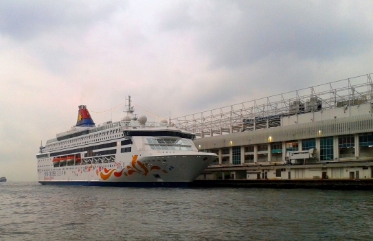 图为丽星游轮~目测比实德大一点(当时在码头没有看到实德的真面目并没有很想选择实德,但是被GIGI姐一番连哄带骗的游说下就妥协了)
