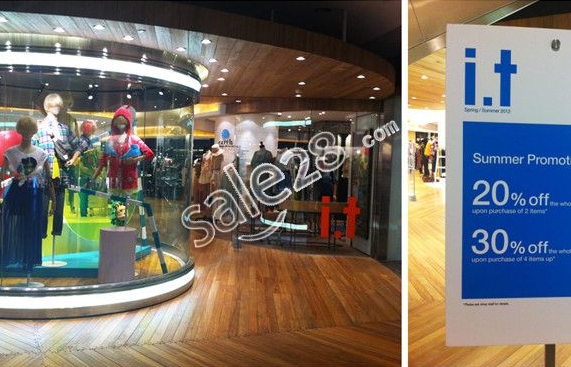 i.t朗豪坊店减价开始啦!香港潮牌i.t就不用和大家多介绍啦,i.t网罗的主要是日本和欧洲的一些深受年轻人追捧的时尚个性品牌和自创品牌,所以更讲求个性。如果你是个性达人,这次i.t朗豪坊店就最适合你啦!购买2件就有8折优惠,4件及以上是7折优惠哦!
