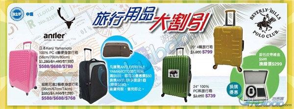凡购买antler/Kenji Yamamoto旅行用品满$500,即可以优惠价$50换购antler手提袋1个(原价$280),数量有限,售完即止。
