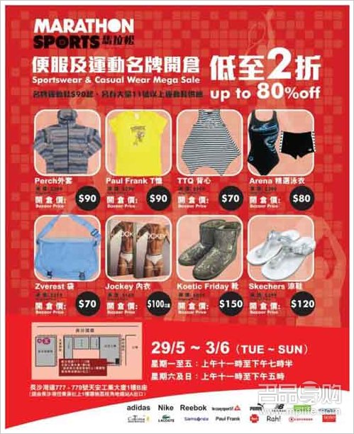 马拉松 便服及运动名牌开仓低至2折