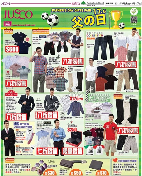父亲节就在本月的17日,现在还有时间来挑父亲节礼物哦!香港吉之岛父亲节礼物精选,为各位爸爸及男士们准备了很多服装及配饰呢!从日本品牌的西装到平日休闲的T恤,一个都不少!还有夏天不可缺少的太阳镜,让你在这个6月成为最有型的爸爸哦!不仅是爸爸,各位男生们不妨也趁这个时候为自己添置点行头吧!全场最低7折起,不可错过!