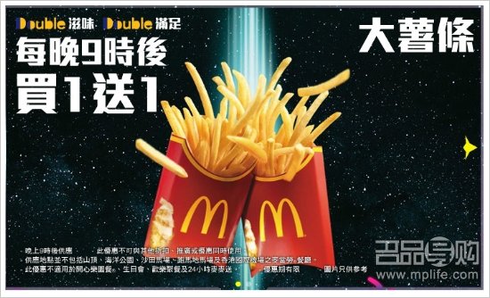 香港麦当劳9点后买1送1优惠