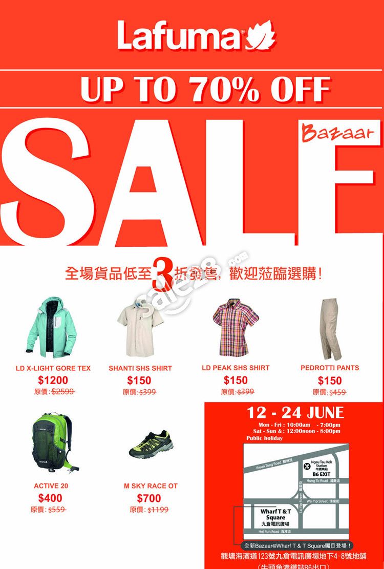 九仓电讯广场打折啦!本次香港九仓电讯广场为大家带来的是Lafuma运动品牌的专场特卖哦!全场低至3折起!包括服饰、运动鞋、包类,Lafuma是欧洲著名的专业户外品牌,不管是设计还是材质都是一流的呢!熟悉我们网站的朋友应该经常能看到九仓电讯广场打折的资讯,次次的折扣都是很划算的,不可错过哦!